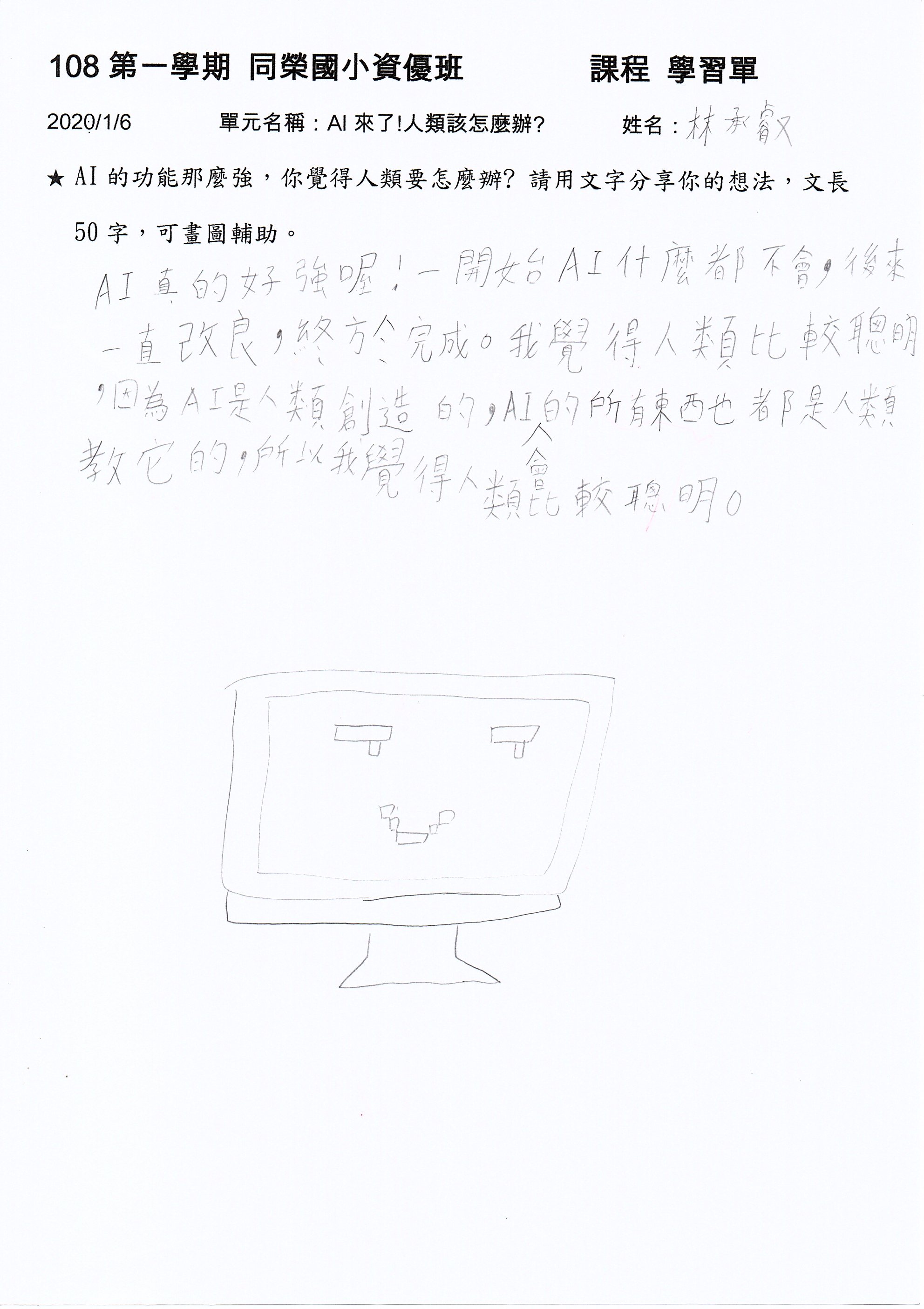 AI真得好強喔! 一開始AI什麼都不會,後來一直改良,終於完成。我覺得人類比較聰明,因為AI是人類創造的,AI會的所有東西也都是人類教它的,所以我覺得人類比較聰明。